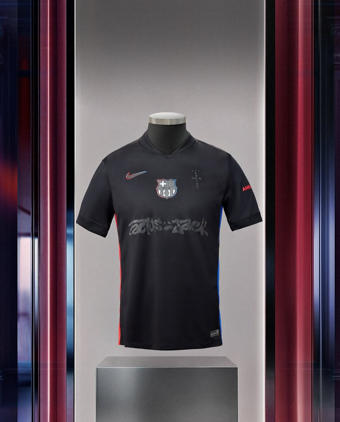 This Fan Edition away shirt redefines modern sportswear, featuring a bold and futuristic design that stays true to Barça’s spirit while embracing the raw creative energy of Cactus Jack. With its unique color palette, standout details, and premium fabric, this limited-release jersey is more than a shirt — it’s a cultural statement.